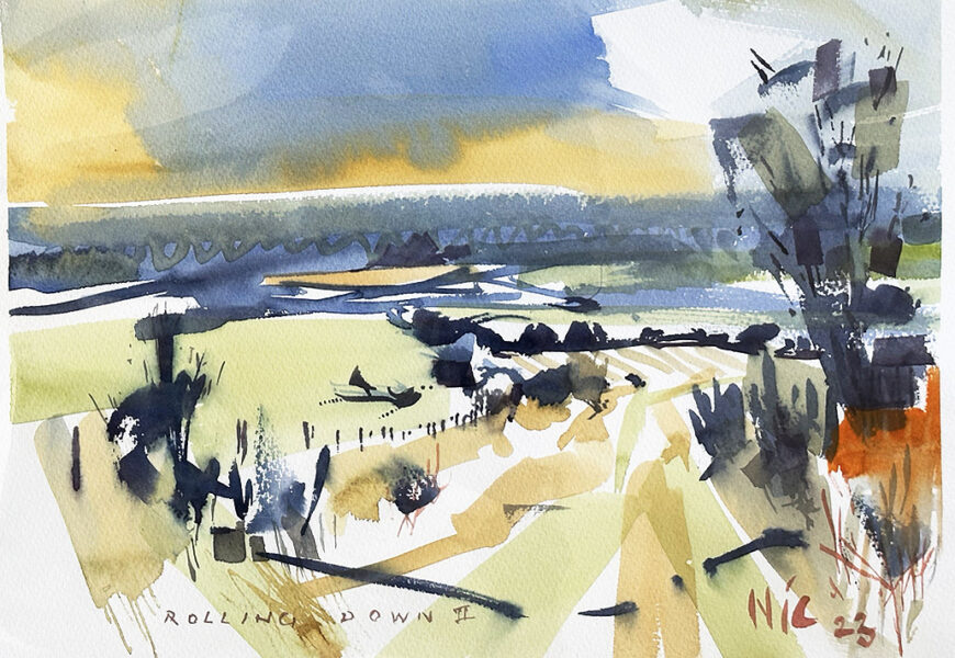 Nic Cowper’s art occupies a vibrant space between observation and imagination — a world where watercolour and mixed media fuse into something both expressive and meditative. At first glance, his paintings may seem spontaneous, even abstract, but linger longer and they unfold into landscapes of emotional resonance and perceptual depth.