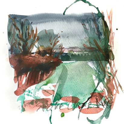 Watercolour for sale SOLD Part of a series of Autumn landscapes for a small show in 2017, this al fresco painting of Stoughton Down set the tone and style of the collection. Watercolour onto Saunders Waterford Half Sheet,…