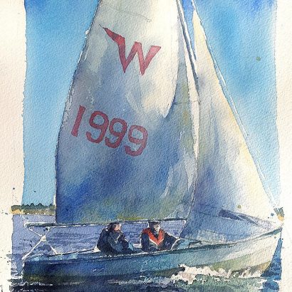 RS Feva sailing dinghy in watercolour Delighted to have completed and delivered this enormous watercolour of the family’s RS Feva. Painting was a surprise gift for a birthday. The family are regular sailors in Chichester Harbour, sailing from…