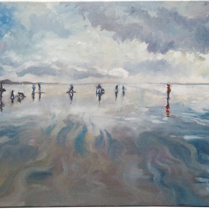 Surfers at Saunton Sands This is “Beach Ensemble” an early oil painting showing surfers getting ready on the beach at Saunton Sands. Completed and dated 2012 it’s part of a set of oils from a set of beach…