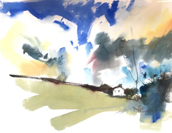 Inspired by a visit to Cornwall – walking over the moors – Paper 22″ x 15″ – Half Sheet.  Frame approx 60 x 47cm