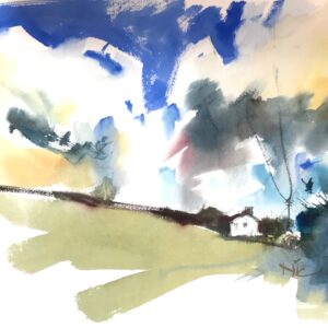 Painted on a rainy day in may 2022. In these pleine aire sessions I simply apply paint in chaotic order to try to capture what i am looking at. This one is my favourite to date due to it’s simplicity and harmony.