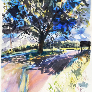 Pleine aire painting of a quiet country lane in the South Downs – Paper 22″ x 15″ – Half Sheet. Image UNKNOWN cm, frame approx LARGE cm