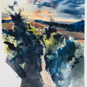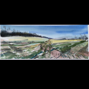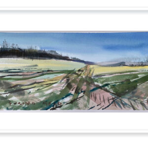 Inspired by running in The Downs – Paper 11″ x 15″ – quarter sheet – strip. Frame approx 24 x 46 cm white