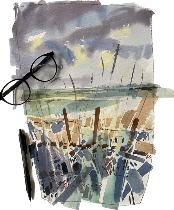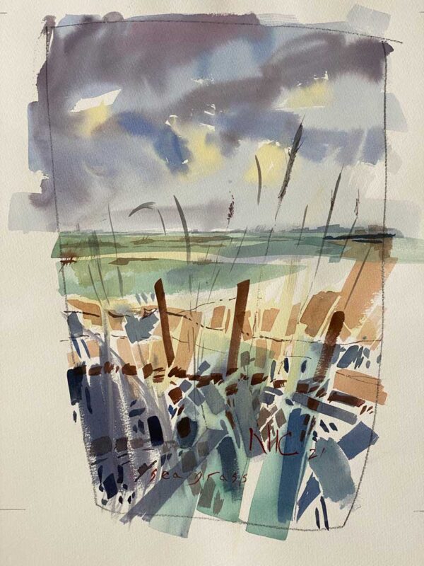 Expressive and emotional response to the coastline around south Hampshire and West Susex, sea grasses overlooking coastal harbour, Hayling Island and Emsworth.
