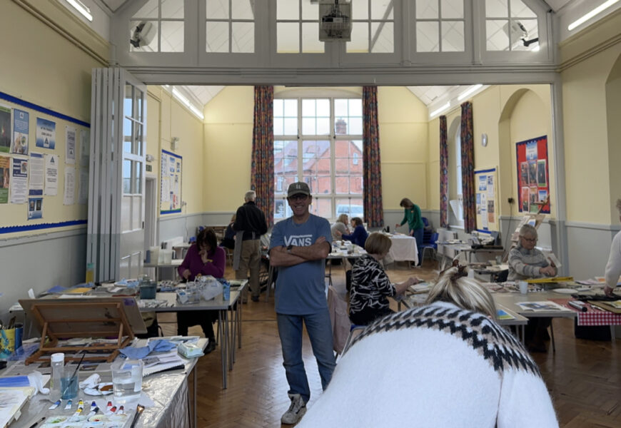 I’ve come away feeling inspired. I especially like the way he demonstrates in bite size pieces so we can paint our pictures in stages with support if needs be.